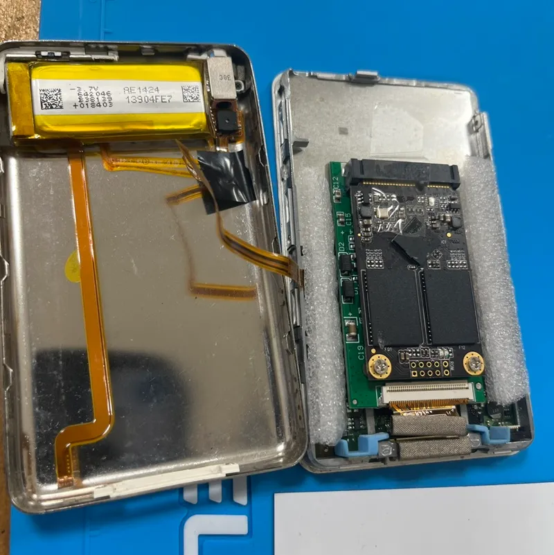 バッテリーiPod classic の修理依頼が入りました。いずれも落下後に起動しなくなったとのことで、動作不良の原因を確認するため分解および点検を実施しました。