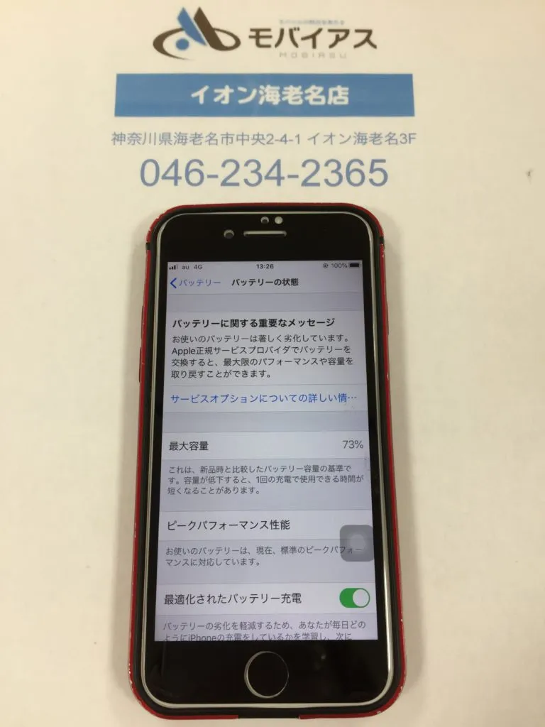 バッテリー劣化によってエラーメッセージが出ており、最大容量も73%になっています。