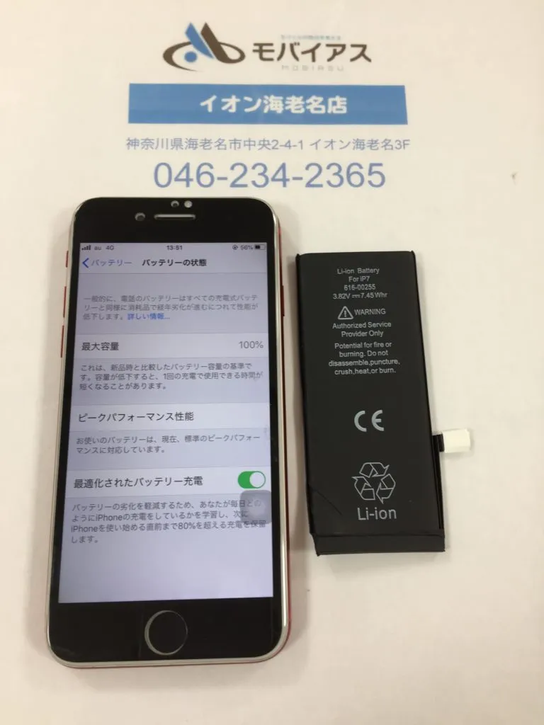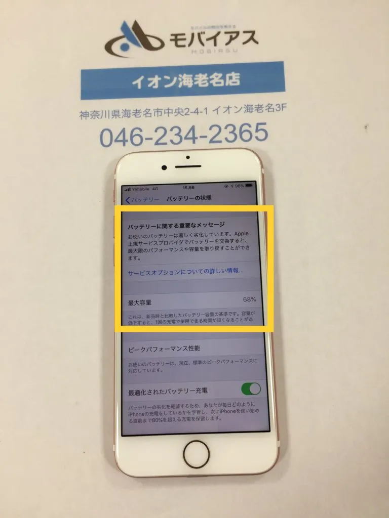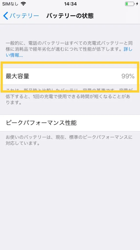 修理後は新品のバッテリーなので最大容量も100%になり、エラーメッセージは無くなります。