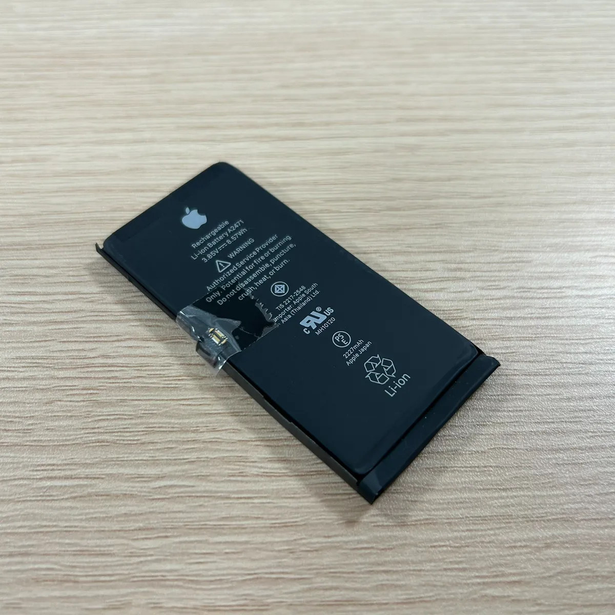 バッテリー交換後のiPhoneと取り外したバッテリーになります。
